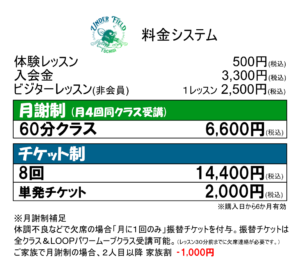 ・チケット制(6ヶ月有効の単発チケットor8回チケットを購入)